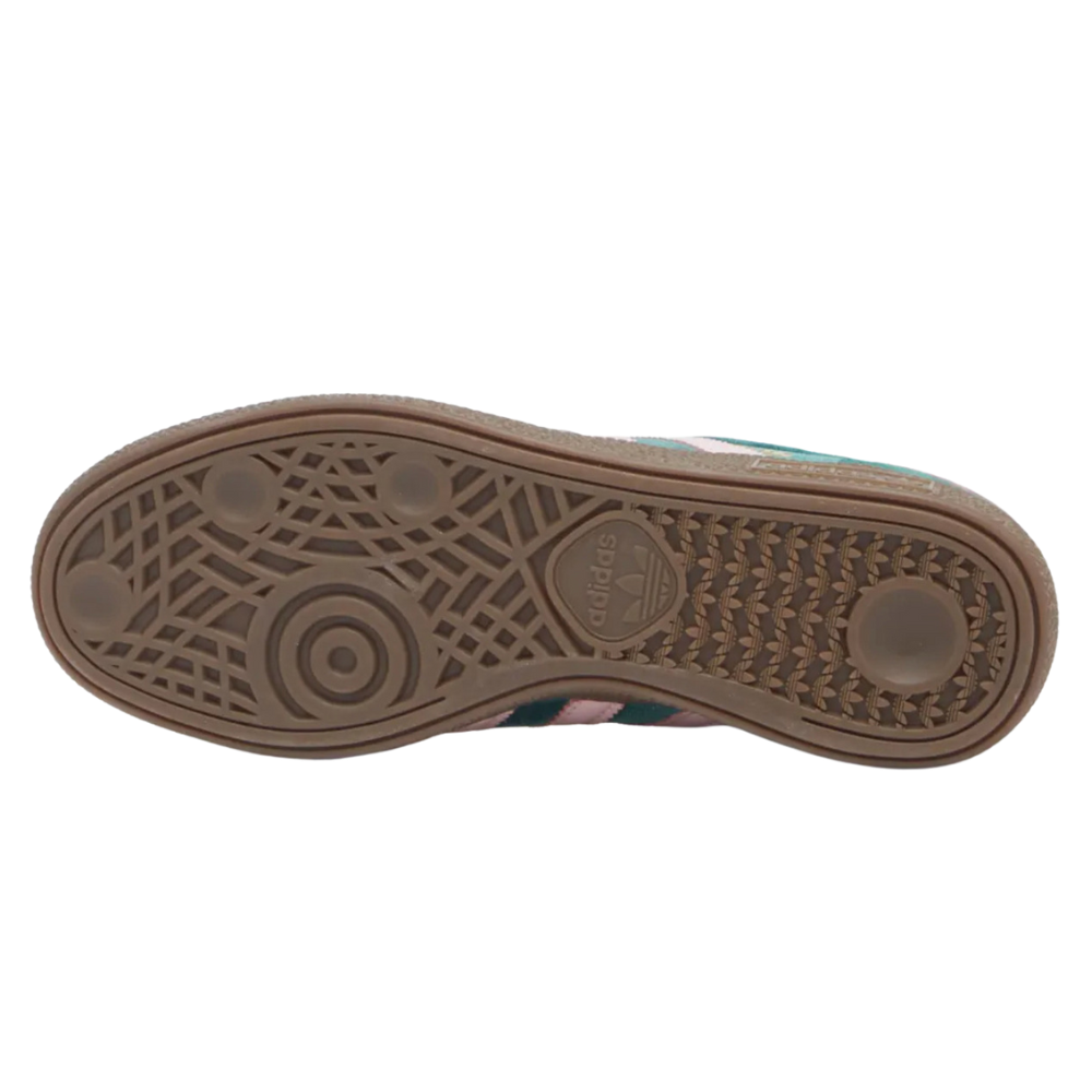 Adidas Handball Spezial Green Pink Velvet combines rich green velvet with soft pink accents for a bold yet refined look. The gum sole grounds the design in tradition, while the luxurious materials elevate the classic silhouette. A standout sneaker that adds a touch of elegance to any outfit.