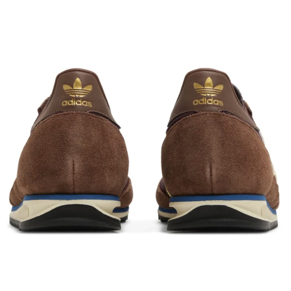 The adidas SL 72 OG "Maroon Preloved Brown" combines vintage vibes with modern sustainability. The maroon nylon upper is paired with rich brown suede overlays, featuring beige three-stripes and gold-foil branding. A textured Ecotex tongue and lightweight EVA midsole ensure comfort, while the serrated rubber outsole offers solid traction. This sneaker blends retro design with eco-friendly materials.