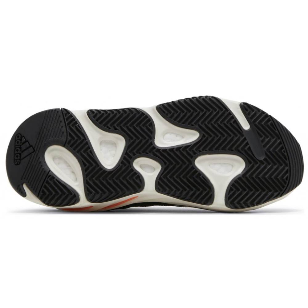 The Yeezy Wave Runner 700 debuted in November 2017, with a retro-inspired design featuring a grey mesh base and bright blue and teal accents. Suede overlays on the toe and heel, neon green laces, and a bulky white midsole complete the look, with pops of black and bright orange for added contrast.