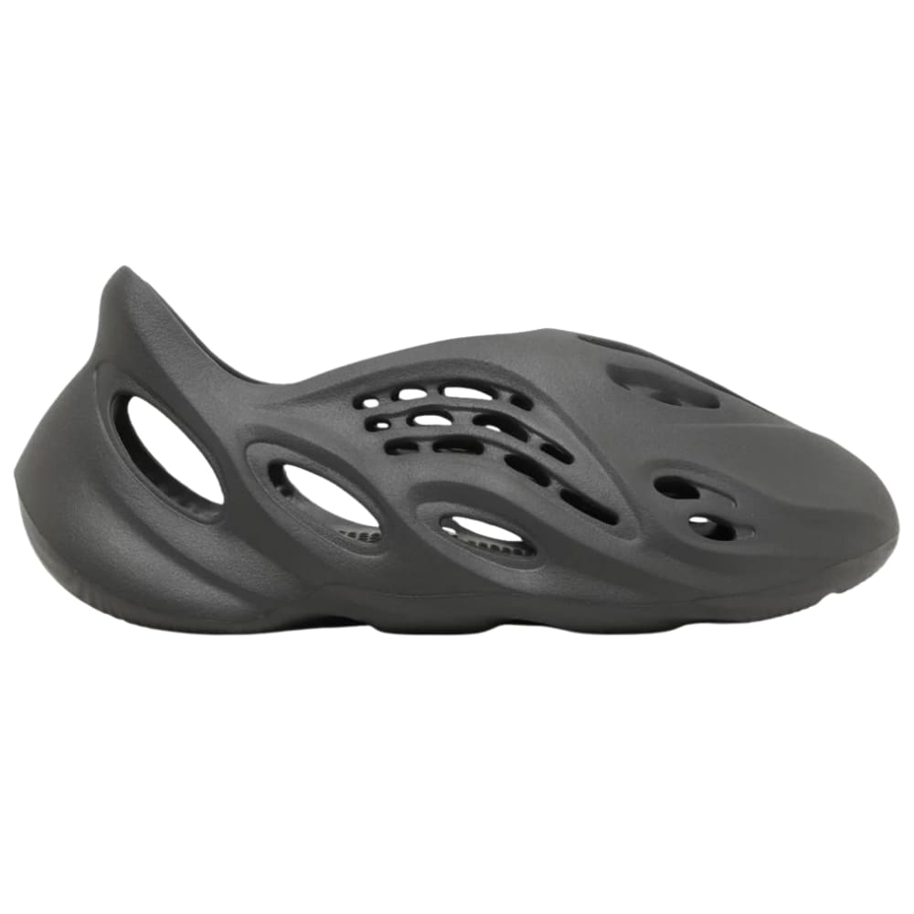 The adidas Yeezy Foam Runner ‘Carbon’ features a dark grey one-piece EVA foam construction with flowing lines and a sculpted heel for a secure fit. Mapped vents enhance breathability, while the textured footbed provides comfort. The durable rubber outsole ensures grip.
