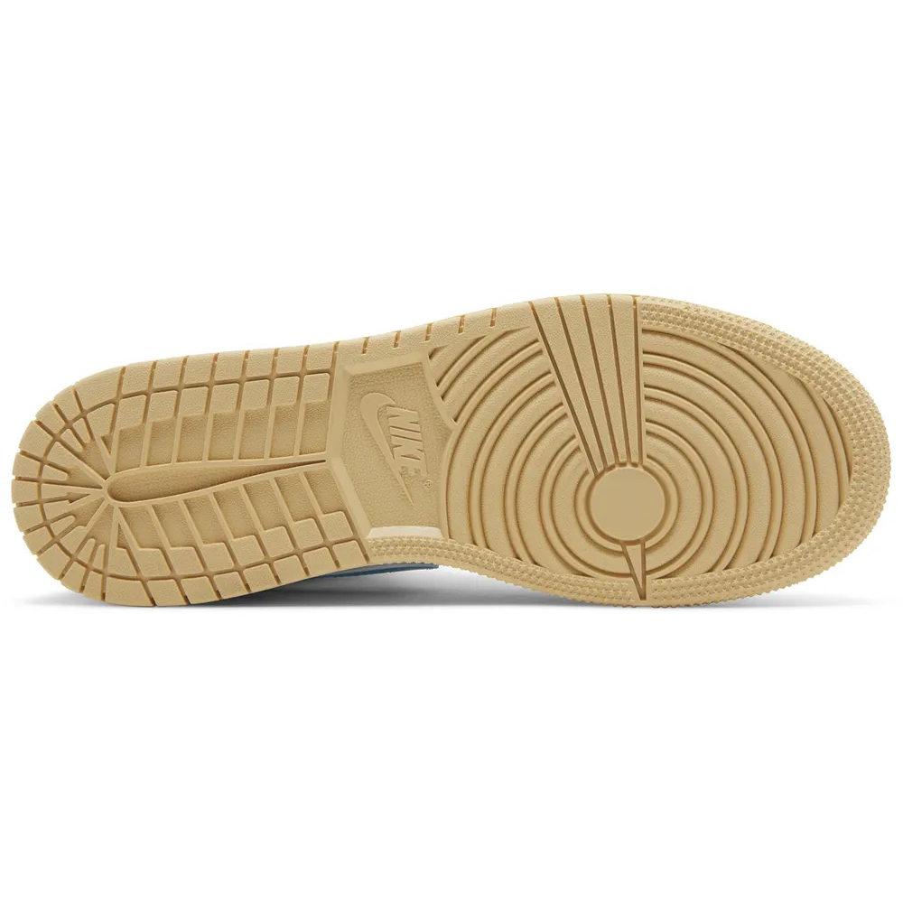 The Jordan 1 Mid Aquatone (GS) offers a stylish and supportive mid-top design, providing extra ankle support without sacrificing style. The padded collar and tongue ensure comfort for extended wear. The sneaker sits on a white midsole with foam cushioning for support and shock absorption, while the outsole features a traction pattern to provide grip and prevent slipping on various surfaces such as concrete, wood, and asphalt.
