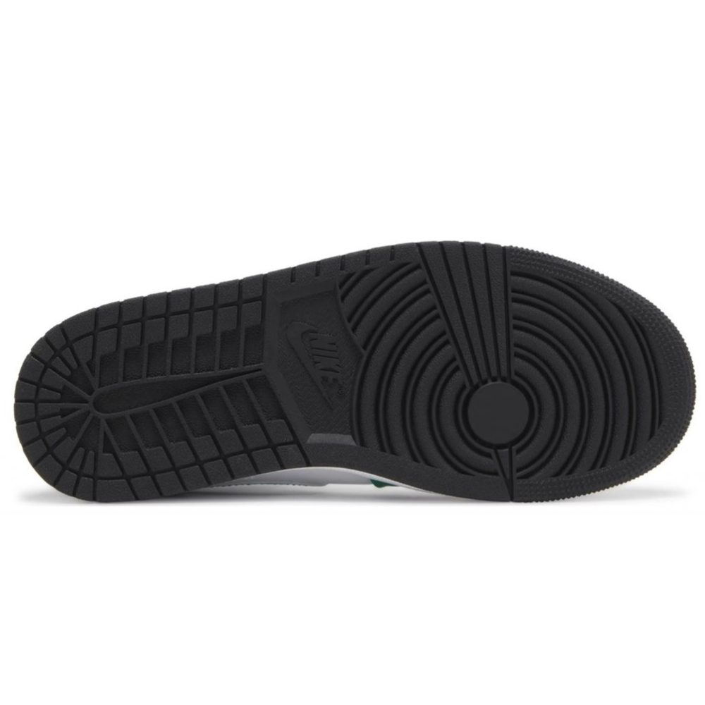 The Air Jordan 1 Mid ‘Lucky Green’ applies classic two-tone color blocking to a timeless silhouette modeled after Peter Moore’s original 1985 design. The leather upper combines a crisp white base with emerald overlays and a color-matched Swoosh. A Jumpman icon adorns the woven tongue tag, while a retro Wings logo is stamped in black on the lateral collar flap. The mid-top rides on a textured white midsole, fitted with encapsulated Air-sole cushioning and supported by a black rubber outsole.