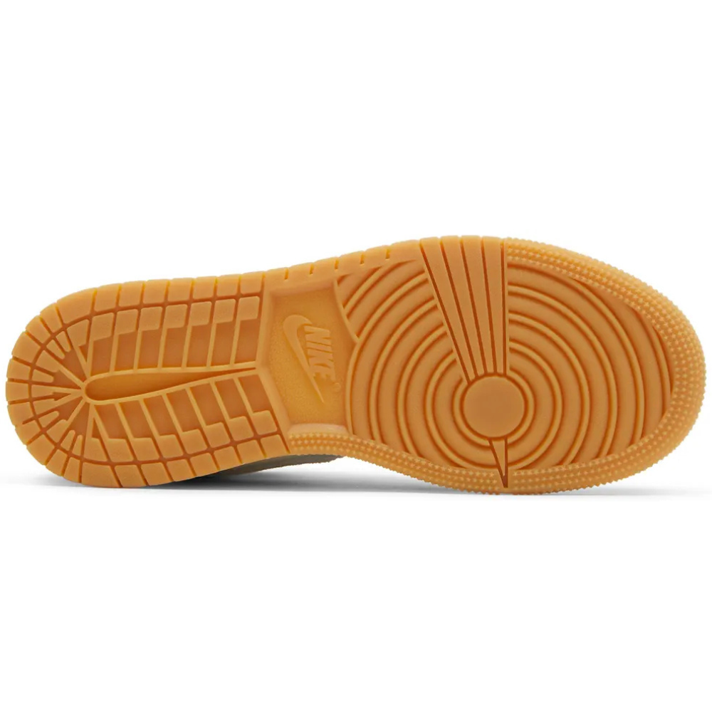 Air Jordan 1 Mid SE ‘Coconut Milk Particle Grey’ (GS) showcases subdued tones inspired by natural landscapes. Instead of a traditional leather build, the upper combines a cream-colored canvas base with grey suede overlays. Standard Jumpman branding adorns the sockliner and woven tongue tag, while a retro Wings logo is stamped on the lateral collar flap. The mid-top rides on a white rubber midsole, fitted with an encapsulated Air-sole unit in the heel and supported underfoot by a gum rubber outsole.