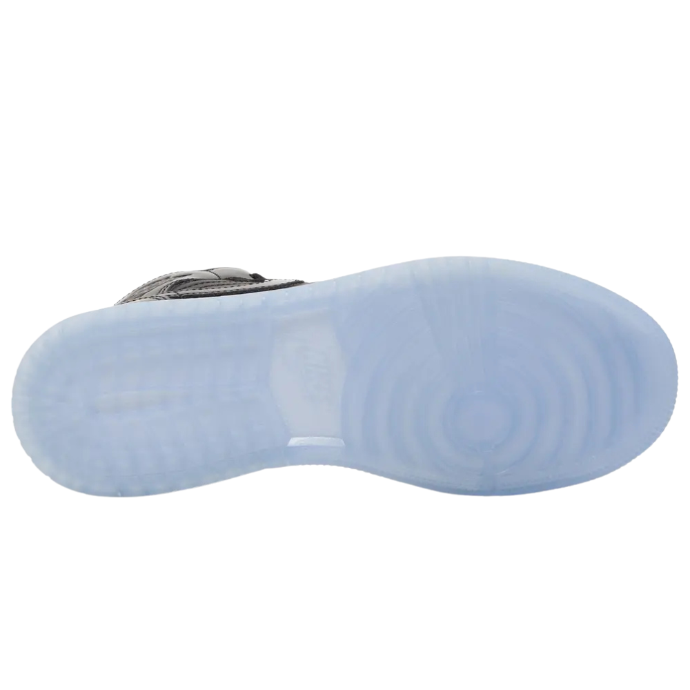 The Air Jordan 1 Mid SE Space Jam (GS) brings back the iconic colorway as a tribute to the 1996 movie Space Jam. The sneaker features key elements from the Air Jordan 11 Retro Space Jam, including black patent leather uppers and an icy blue translucent outsole. The Jordan 1 Mid SE sits lower on the ankle compared to its Air Jordan 1 OG High counterpart.