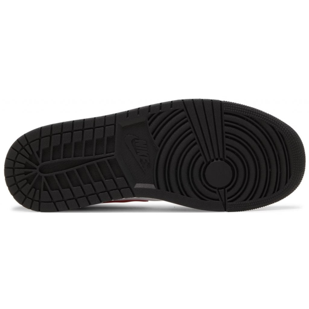 Air Jordan 1 Mid White Black Red 2022 is a release from Jordan Brand that resembles the 2018 Air Jordan 1 Bred Toe. The model features a white leather upper with red accents on the collar, tongue, perforated toe box, and Swooshes. It also includes black overlays, insole, lining, laces, and a rubber outsole, with a Jumpman logo on the tongue. A winged logo on the collar and a white midsole complete the look.