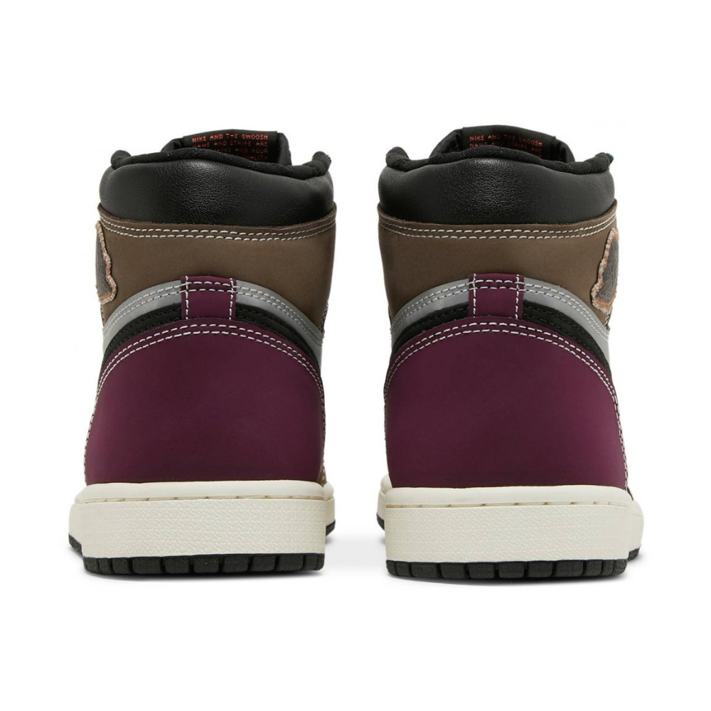 The Air Jordan 1 High OG Crafted treats the iconic silhouette to an eclectic color palette. The upper features a white leather base with brown nubuck forefoot overlays, green nubuck eyestays, a magenta leather heel overlay, and reflective silver trim along the quarter panel and heel. Additional details include a stitched leather Wings logo on the lateral collar flap, two-tone dyed laces, and a standard Nike-branded woven tag atop the nylon tongue. A rubber cupsole with encapsulated Air-sole cushioning anchors the high-top.