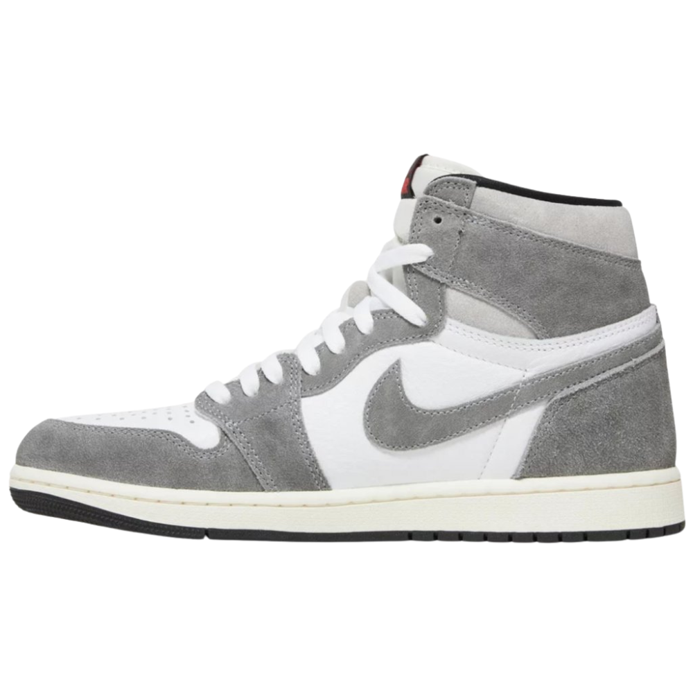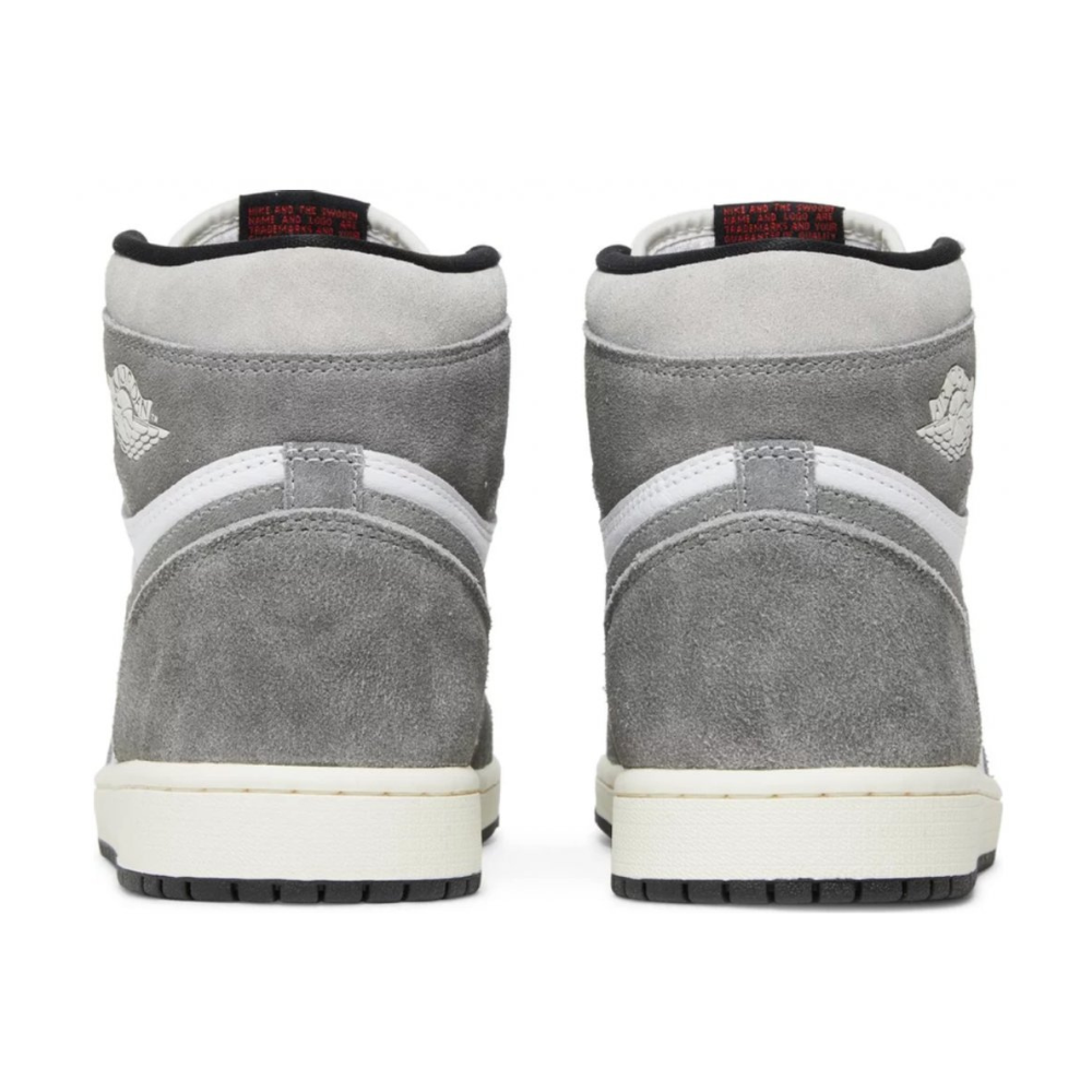 The Air Jordan 1 Retro High OG Washed Black gives the heritage silhouette a refreshed build in neutral tones. The high-top features a white leather upper with grey suede overlays and a color-matched Swoosh. A lighter shade of grey suede is used on the high-cut collar, which is overlaid with an ankle flap marked with the iconic Wings logo. Atop the breathable nylon tongue, a woven Nike tag in black and red delivers a solitary pop of color. Underpinning the sneaker is a vintage off-white midsole, supported underfoot by a grippy black rubber outsole.