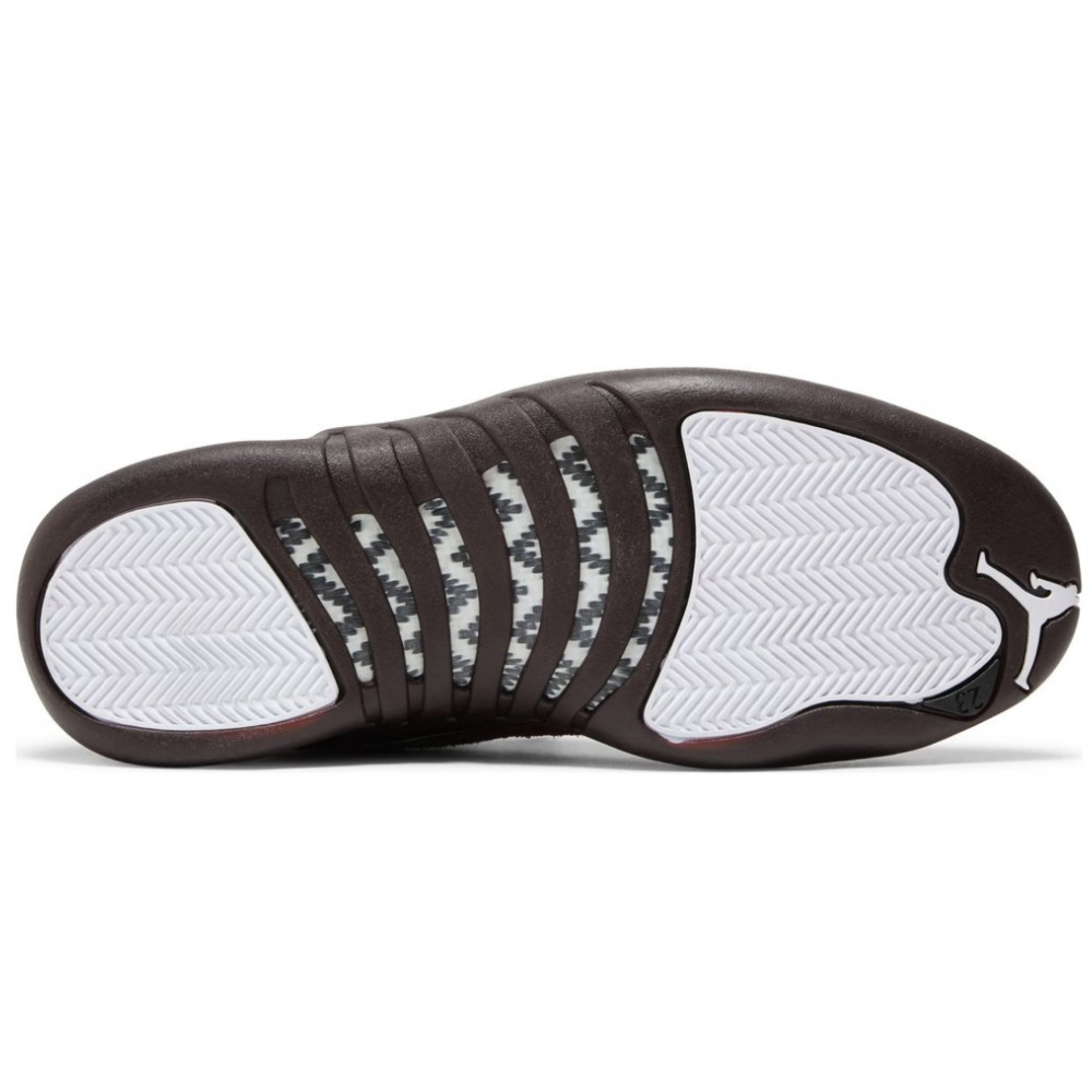 The A Ma Maniére x Air Jordan 12 Retro SP Black brings a premium build to a performance-driven model. Waxed rope laces secure the black nubuck upper with burgundy suede overlays and stitched lines. Mismatched branding is on the tongue, with Jumpman on the right shoe and A logo on the left. Quilted textile lines the interior for a luxurious feel. Underfoot, a maroon rubber outsole features a carbon fiber spring plate and herringbone traction pods.