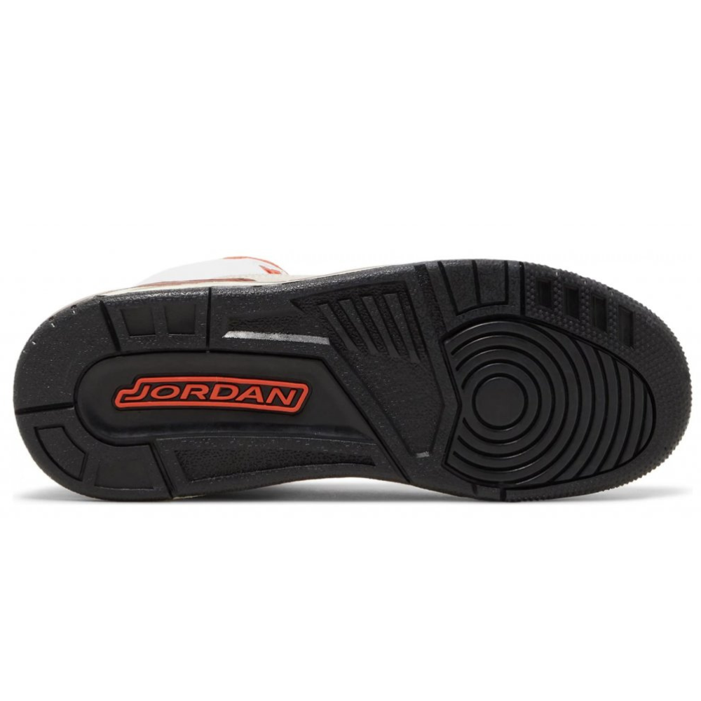 The Jordan 3 Retro SE Dunk on Mars (GS) is a model designed by Tinker Hatfield, blending stylish design and functionality. The sneaker comes in white, black, Mars stone, and orange, with a white leather upper featuring orange overlays on the eyestay and lining. Mars stone leather wraps around the lateral foxing, mudguard, and heel counter above the white midsole. The black rubber outsole provides good traction, while perforations on the collar, eyestay, and tongue ensure breathability. The black Jumpman logo adorns the tongue and heel, and white laces go through plastic eyelets.