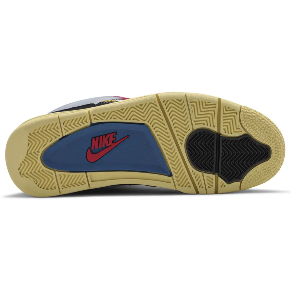 The Union LA x Air Jordan 4 Retro Off Noir is a follow-up to the brands’ sought-after 2018 Air Jordan 1 collaboration. The sneaker features a black suede upper with black mesh on the toe box and blue mesh around the collar. Semi-translucent TPU wings are attached to red molded eyelets, complemented by a woven Air Jordan tag on the padded tongue and Nike Air branding on the heel. The inside tongue displays a folded AIR JORDAN tag for a unique look, while a UN/LA side panel tag highlights the collaboration. A yellowed midsole adds a vintage touch.