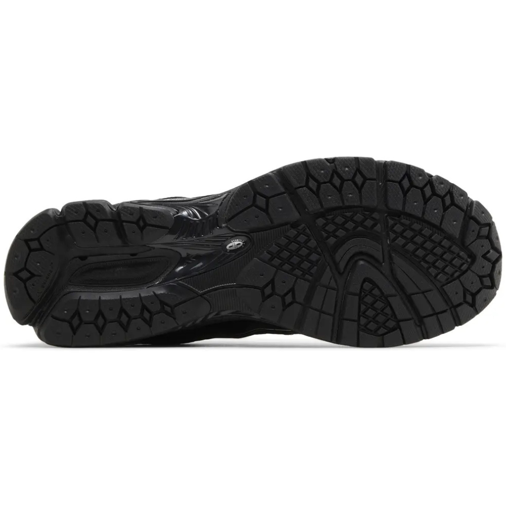 The New Balance 1906R Black Grey features a black open-cell mesh upper with tonal synthetic overlays, highlighted by grey accents along the angular contours. A TPU heel counter ensures rearfoot stability, while a webbing pull tab aids easy on-and-off wear. Cushioning is provided by an ACTEVA LITE midsole with ABZORB SBS inserts in the heel for impact protection, and underfoot, the rubber outsole incorporates New Balance’s Stability Web, a TPU shank that supports the arch.