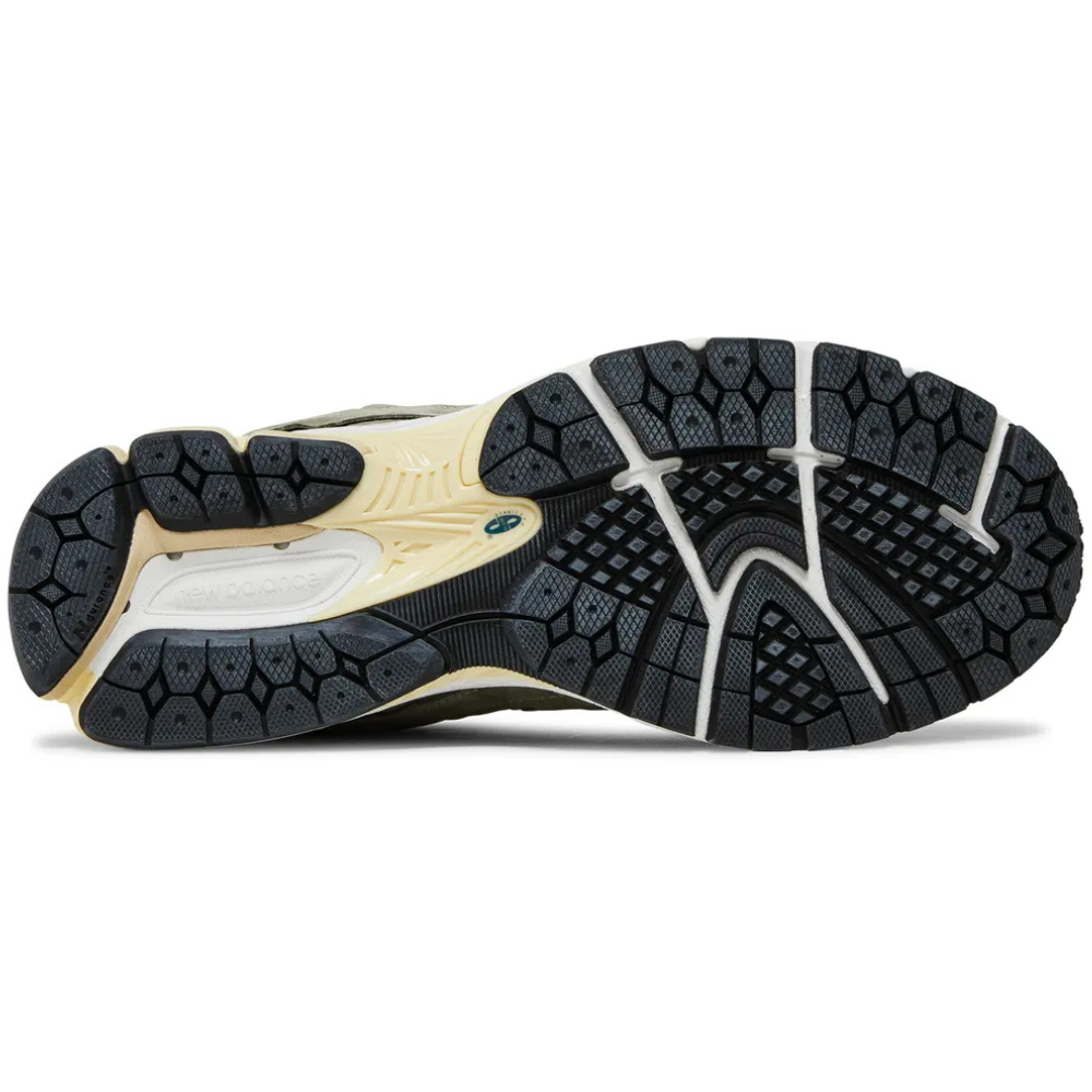 The New Balance 2002R Mirage Gray, part of the 2022 Protection Pack, features a neutral colorway inspired by the classic M1300JP. Its upper combines slate mesh with light grey ‘N’ logos outlined in blue, while raw-edged grey suede overlays cover the forefoot, quarter panel, and heel for a distressed, unfinished look. The ABZORB midsole and rubber outsole are given a weathered finish, balancing vintage style with modern comfort.