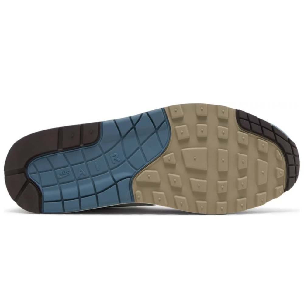 The Patta x Nike Air Max 1 Noise Aqua reunites the creative partners for another AM1 collaboration. The defining feature of the shoe is the wavy suede mudguard, rendered in a bright blue finish with an embroidered mini-Swoosh on the lateral forefoot. The rest of the upper is crafted from matte silver mesh with white leather overlays and a blue suede Swoosh. A woven Patta tag graces the mesh tongue, while embroidered Nike Air branding adorns the back heel. Lightweight cushioning is provided by a pre-yellowed polyurethane midsole with a visible Max Air unit nestled under the heel.