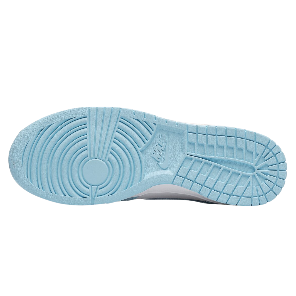The Nike Dunk High Blue Chill brings vibrant energy to the classic basketball silhouette with its striking mix of colors. The smooth leather upper pairs a clean white base with bright blue overlays and a matching Swoosh. Pops of Amarillo yellow appear on the heel tab, tongue label, and sockliner, adding a refreshing contrast. The look is completed with a blue rubber outsole and soft textile lining, combining bold style with everyday comfort.
