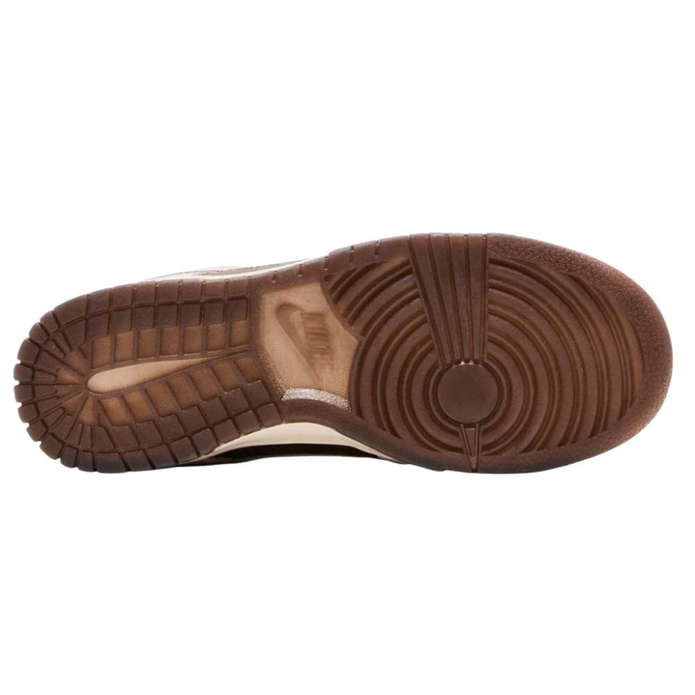Nike Dunk Low Neapolitan is a model inspired by the popular ice cream flavor. The upper in shades of Cacao Wow, Pale Ivory, and Pink Foam combines high-quality leather and suede materials, creating a visually appealing contrast. The beige Swoosh and red accents on the heel add a bold touch to the sneakers. The Sail-colored midsole and semi-translucent brown outsole complete the overall design.