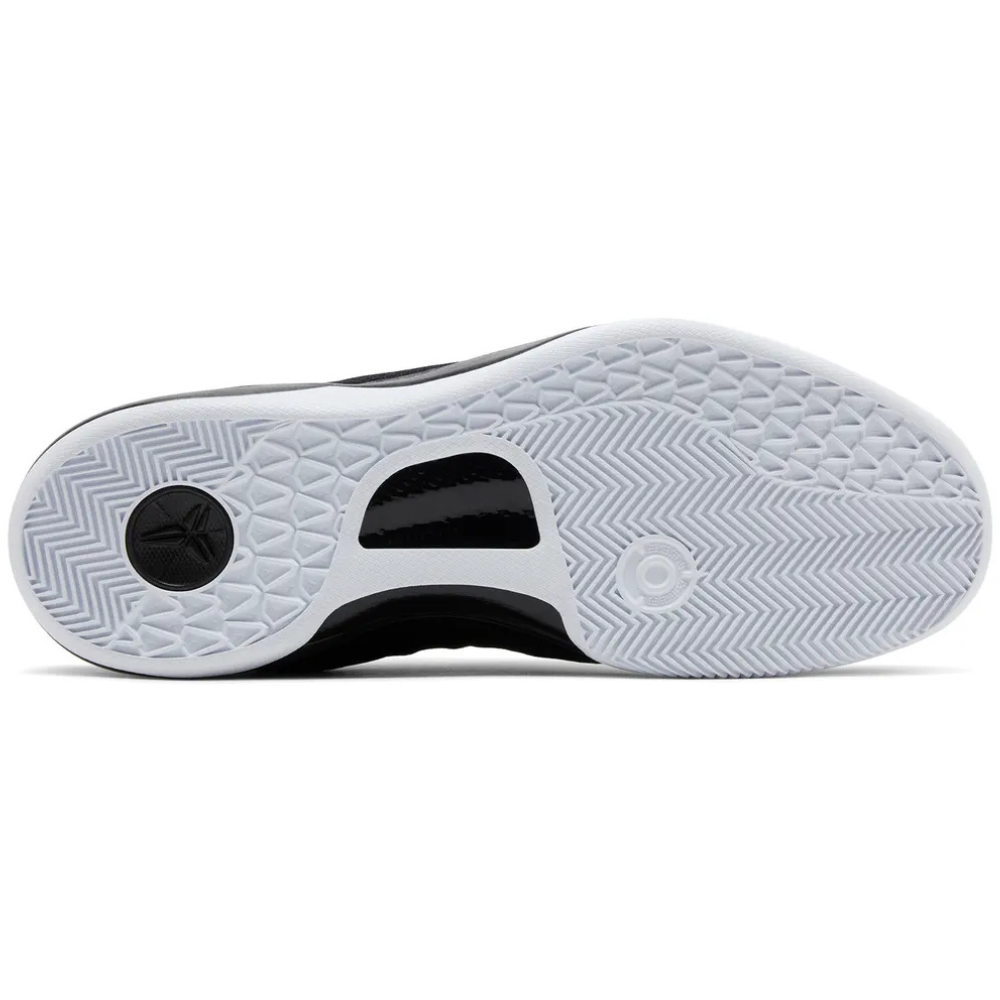 Nike Kobe 8 Protro Lakers Away features a black engineered mesh upper with tonal no-sew overlays and a gold embroidered Swoosh. Kobe Bryant’s sheath logo appears on the tongue and back heel in Court Purple. Lightweight cushioning comes from a drop-in React foam midsole, replacing the original Kobe 8’s Lunarlon foam. The herringbone-traction rubber outsole reveals a bottom-loaded carbon fiber shank plate for midfoot stability.