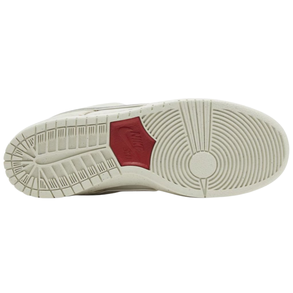 Nike SB Dunk Low City Of Love Light Bone pays homage to Paris with a refined design. The white satin upper is complemented by ivory suede overlays, while a tumbled leather Swoosh adds texture. Red stitching and graphic insoles featuring linked hands with red string nod to the myth of the red thread of fate, completing the romantic theme.
