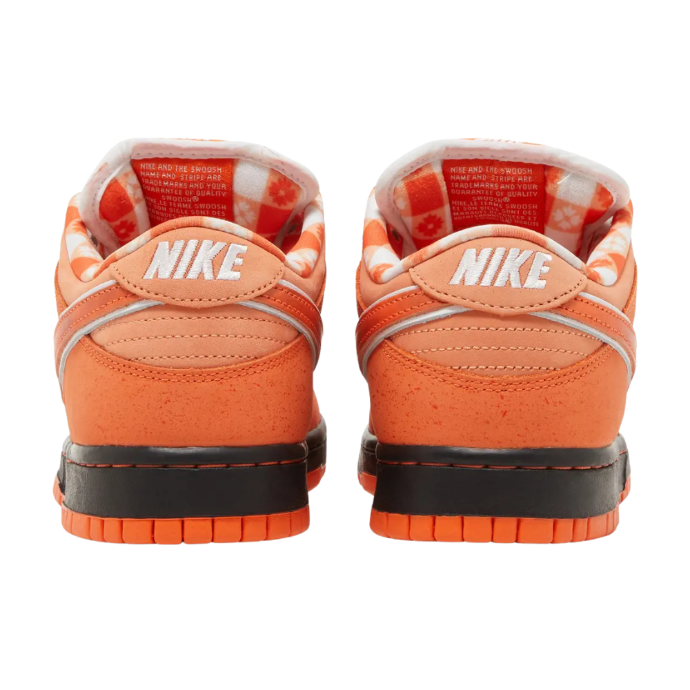 The Concepts x Nike Dunk Low SB Orange Lobster continues the collaborative series started in 2008. Inspired by the rare orange lobster, the nubuck upper features varying shades of orange with lightly speckled overlays and a tonal Swoosh outlined in white. A woven Nike SB tag adorns the white mesh tongue, while the interior lining showcases a bib-inspired pattern. The sneaker rides on a traditional cupsole with black sidewalls and a grippy orange rubber outsole.