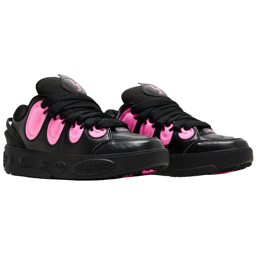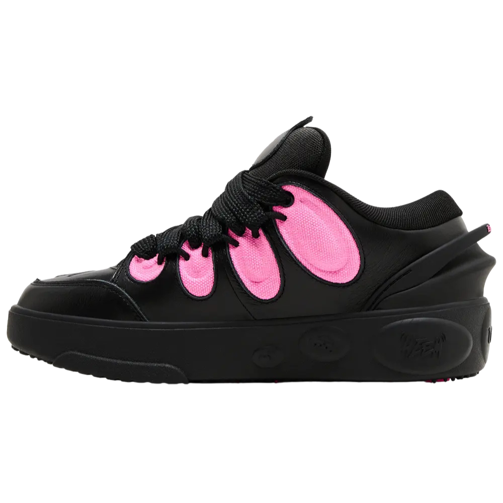 The Puma LaMelo Ball LaFrancé Amour Untouchable features a Puma Black and Glowing Pink colorway in a chunky, Y2K-inspired silhouette. Oversized laces, padded tongue and collar, and a full-length EVA midsole create a bold look. The upper combines leather, textile, and synthetic leather, while the sockliner and insole are fully textile.