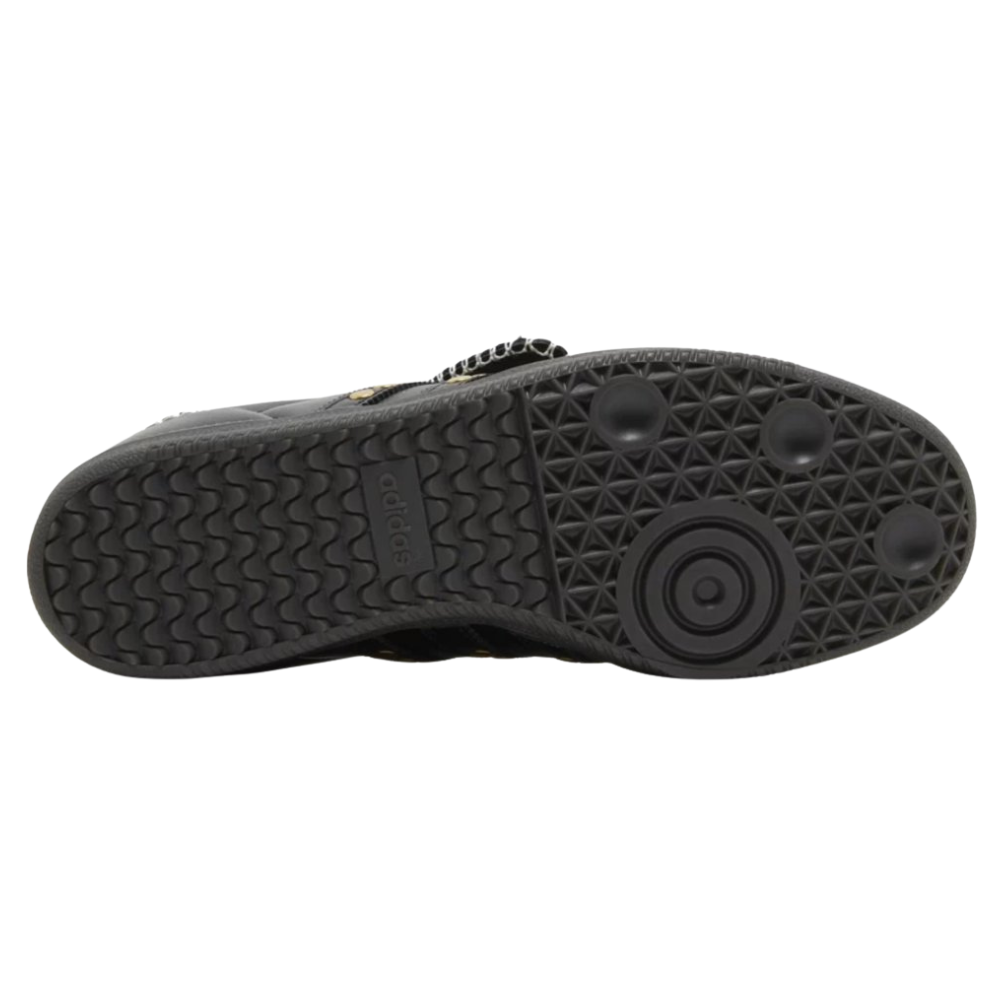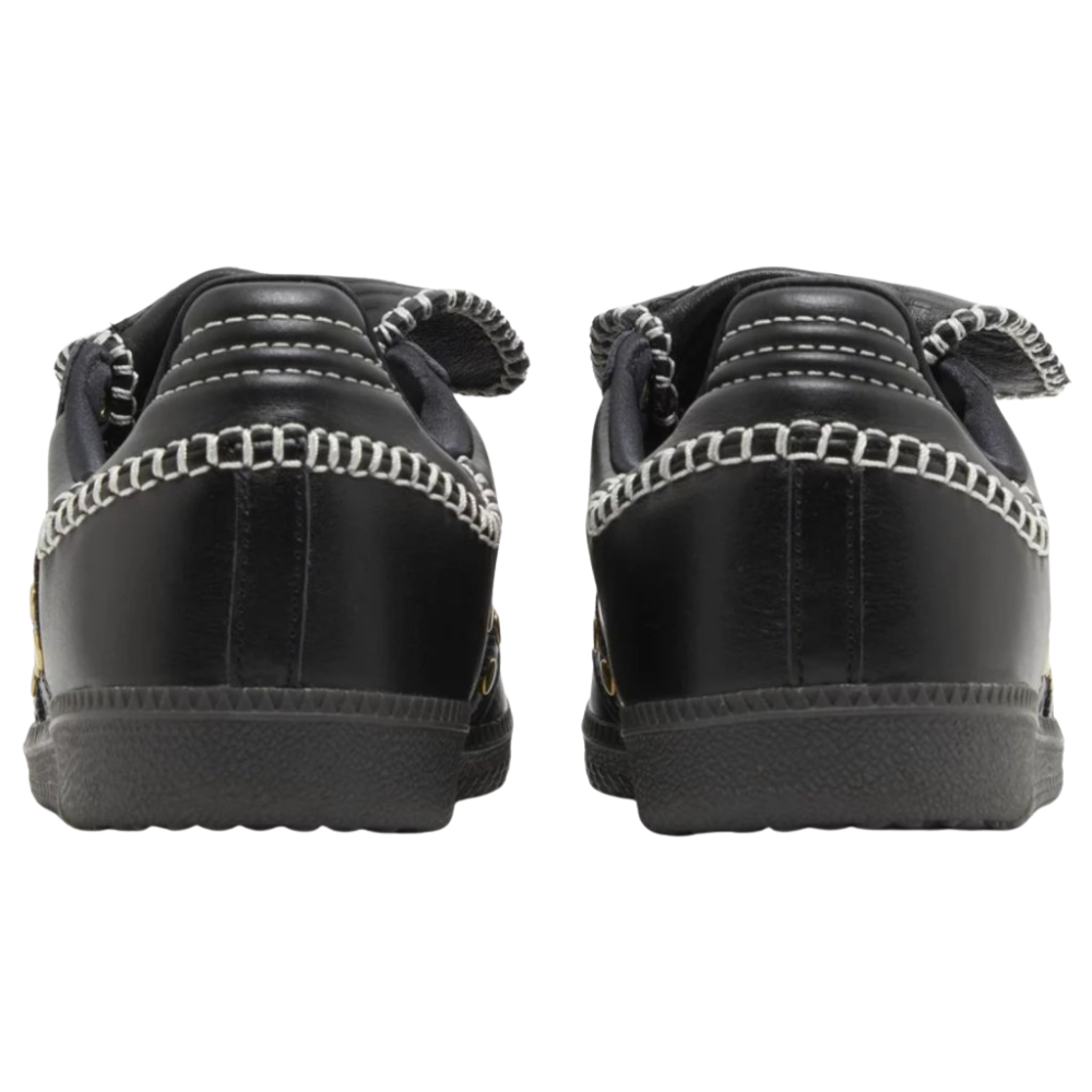Adidas Samba Wales Bonner Studded Pack Black ponúka odvážnu a elegantnú interpretáciu klasického modelu Samba. Čierny kožený zvršok dopĺňajú jemné kovové detaily a prémiové prvky typické pre spoluprácu s dizajnérom Walesom Bonnerom. Kontrastné prešívanie a predĺžený jazyk dodávajú teniskám jedinečný charakter.