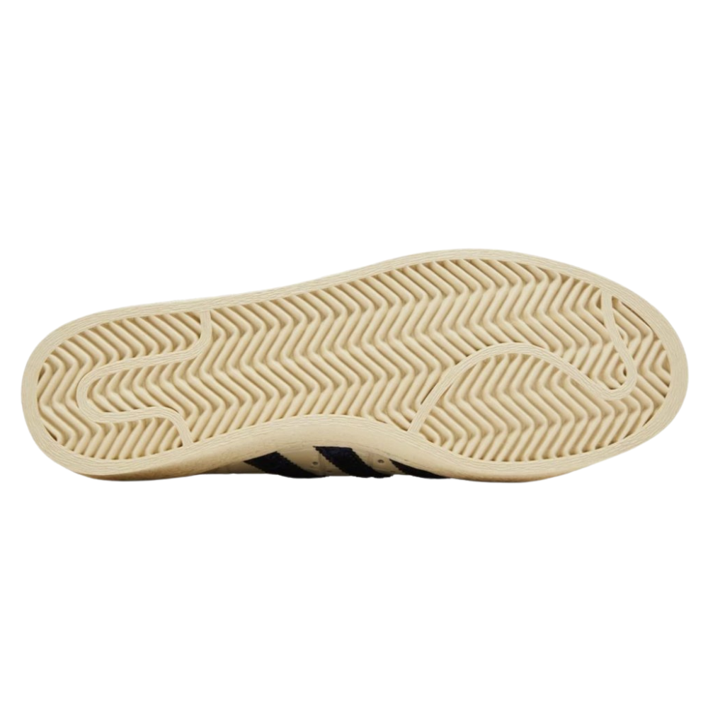 Model Wales Bonner x adidas Superstar „Croc - Wonder White“ sa vyznačuje vyrazenou plazí textúrou na zvršku zo slonovinovej kože a tromi tmavomodrými koženými pruhmi na bokoch. Zadný panel zdobí kovové zlaté logo Trefoil a na jazyku a vlastnej stielke je vidieť dvojité logo. Vintage sivobiela gumená podrážka má trakčnú podrážku s efektom rybej kosti.