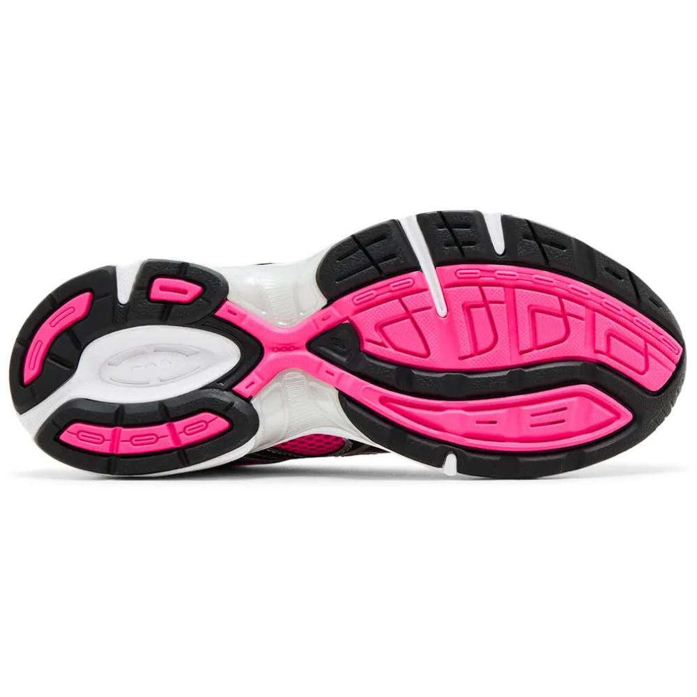 Topánky ASICS Gel 1130 Pink z kolekcie Neon Pack majú zvršok z otvorenej sieťoviny v odtieňoch fuchsie s čiernymi tigrími pruhmi a metalickými striebornými vrstvami. Biela medzipodrážka z EVA s ružovou gélovou vložkou v päte poskytuje ľahké odpruženie, zatiaľ čo delená gumená podrážka obsahuje systém ASICS TRUSSTIC pre stabilitu strednej časti chodidla.