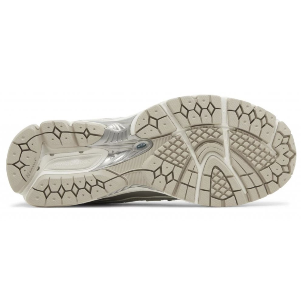 Model New Balance 1906R Silver Metallic Sea Salt má sieťovaný zvršok Sea Salt so striebornými metalickými vrstvami zo syntetickej kože a reflexnými detailmi, ktoré sa krížia a vytvárajú objemný, technický estetický dojem inšpirovaný bežeckými topánkami zo začiatku 21. storočia. Tlmenie ABZORB a N-ergy zaisťuje stabilitu a ochranu pred nárazmi a technológia Stability Web podporuje základňu. Šnúrky Sea Salt dotvárajú vzhľad s nastaviteľným strihom.