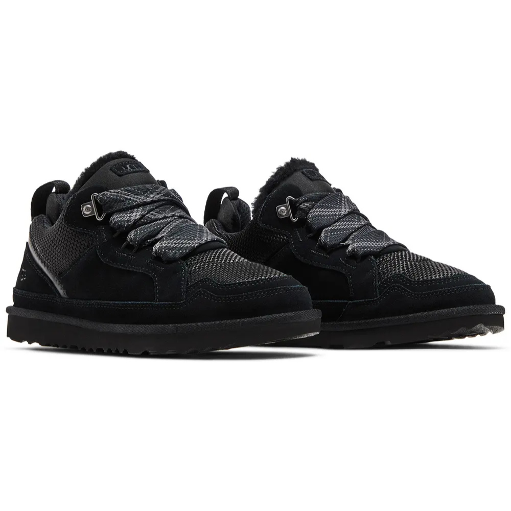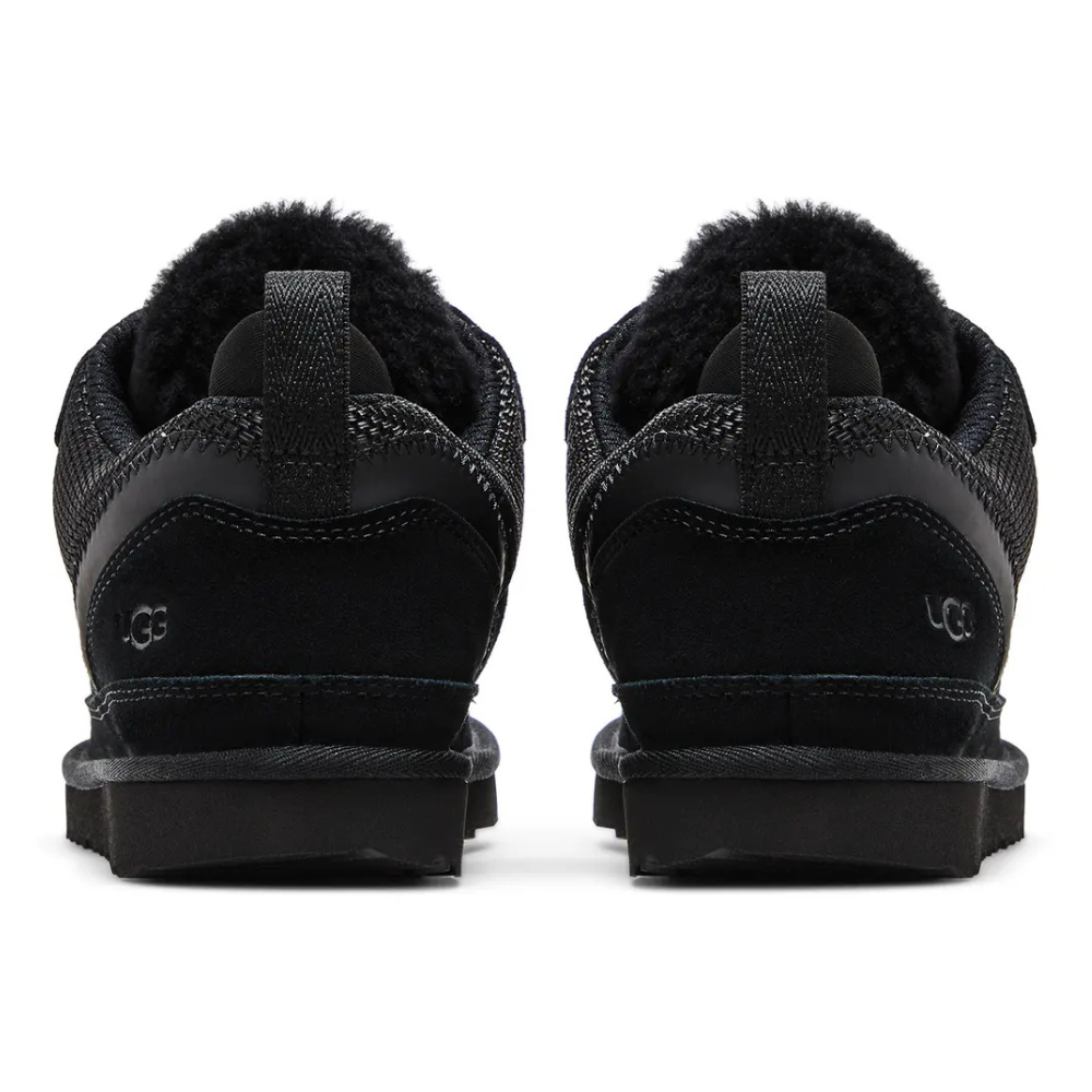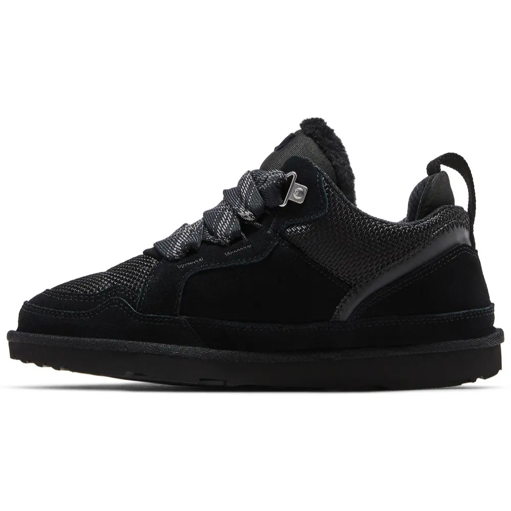 UGG Lowmel Black sú pohodlné a ekologické tenisky vyrobené z čierneho semišu a recyklovaného plátna. Majú polstrovaný golier, veľký jazyk a podrážku z EVA s efektom cukrovej trstiny s hviezdicovým vzorom pre tlmenie a priľnavosť.